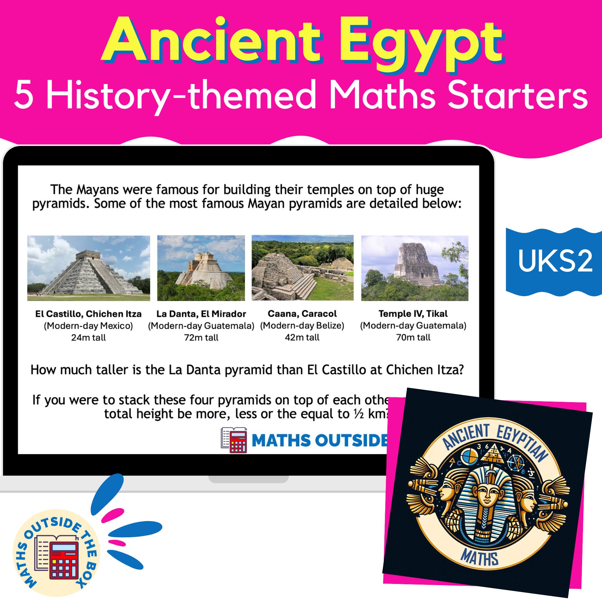 A selection of five Maths starters, linking learning to the topic of the Ancient Egyptians. Suitable for UKS2.